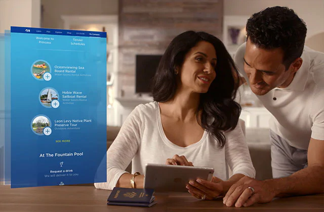El Ocean Compass le ayuda a conocer su barco y su crucero, le ayuda a encontrar a sus acompañantes, ayuda con el proceso de embarque, le recomienda excursiones en puertos de escala, le permite pedir su bebida favorita y mucho más.