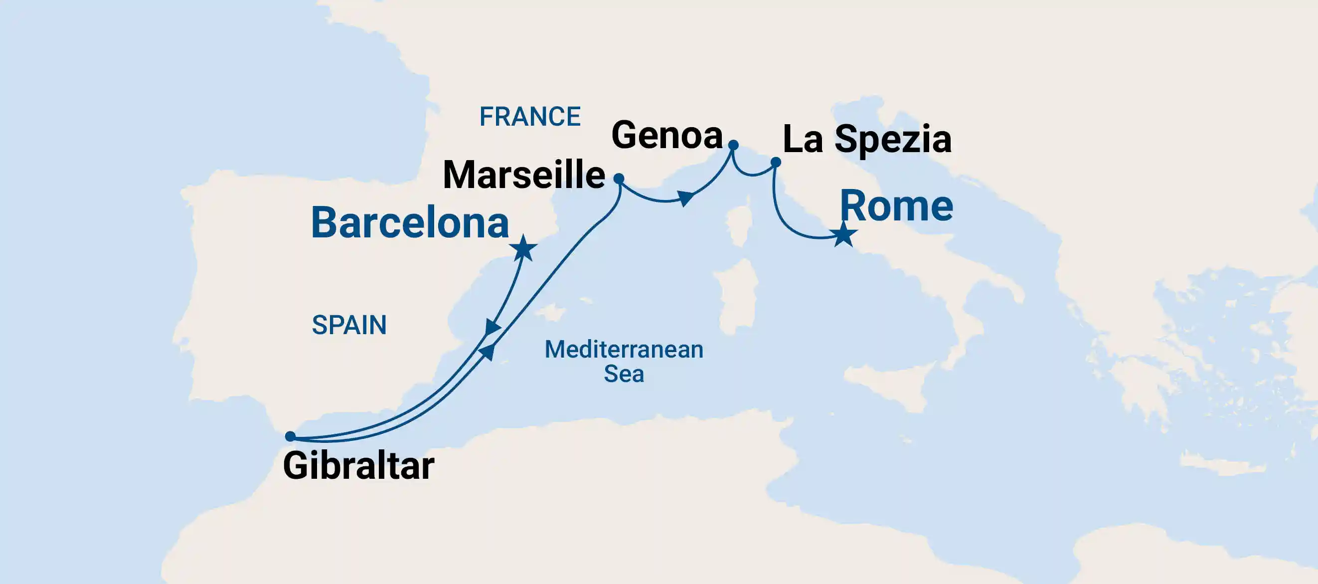En un crucero por el Mediterráneo Occidental, puedes explorar destinos icónicos como: