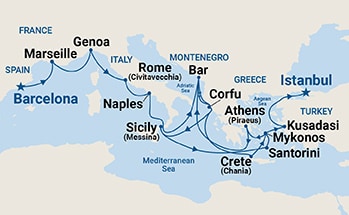 Os preços estão em EUROS ou DÓLARES EUA conforme indicado na tabela de Preços. São preços SOMENTE CRUZEIRO em pensão completa, sem incluir qualquer serviço aéreo ou terrestre, EXCETO se indicado de outra forma no programa do itinerário. Os preços e a disponibilidade exibidos estão sujeitos a alterações até o momento da realização da reserva.