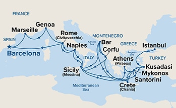 Ver Contrato de PassagemReserve por 50€ por pessoa, não reembolsáveis no caso de cancelamento, por qualquer motivo, antes da data de pagamento final. Válido para reservas efetuadas antes da data de pagamento final do cruzeiro. Datas de partida applicáveis: 13/06/2027